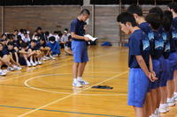 部活動ごとに、まず3年生から下級生へ激励のメッセージがあり、