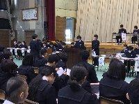 2019年2月7日 17時00分体育館で、第2回生徒会総会が実施されました。心配されたインフルエンザも予防が功を奏し、罹患状況は低くなっています。議案は本年度活動の反省と会計決算についてでした。議長を2年生の新國恋羽さんと東條隼人くんが務め、議事をスムーズに進行していました。