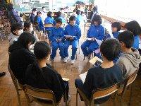 2019年2月12日 17時00分この4月に本校に入学を予定している町内4つの小学6年生児童約70名を対象に、入学説明会が開催されました。児童らはまず小グループに分かれ、中学1年生と車座の懇談を行いました。はじめは緊張した様子でしたが、しだいに授業の様子や部活動など、さまざまな質問が出され、中1年の先輩がそれに優しく答えていました。
