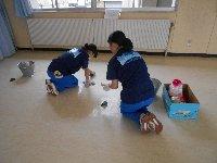 2019年3月7日 17時00分卒業式を前に、3年生は教室や廊下、プレイホールなど、お世話になった校舎に感謝の気持ちを込めてガラス磨きや床磨きなどの清掃活動を行っていました。トイレも便器の中までピカピカに磨いていました。