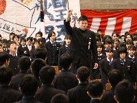 2019年3月11日 17時00分インフルエンザのため延期していた同窓会入会式が、本日行われました。折笠義則同窓会会長さんにご挨拶をいただき、記念品の印鑑と証書用フォルダーが生徒に贈られました。卒業生を代表し、尾崎青音さんが「地域に貢献できる人間として自覚を持って行動していきます」と誓いのことばを述べました。
