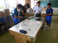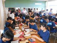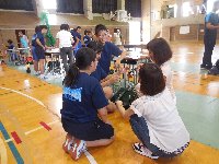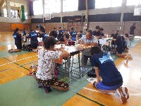 2018年8月26日 17時00分第2学年PTA行事「親子防災教室」が実施されました。日本赤十字社福島県支部と塩川町赤十字奉仕団の方々にご指導、ご協力をいただき、生徒・保護者・職員あわせて約90名が小グループをつくり知恵を出し合って竹ひごタワーを建てるワークショップや、ハイゼックス炊飯での非常食体験などを行いました。