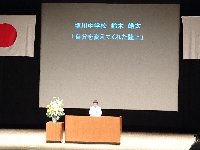 2018年7月21日 17時00分少年の主張喜多方市大会が開催され、小学生17名、中学生11名が意見発表を行いました。本校から2名の生徒が出演、鈴木皓太くんは「自分を変えてくれた陸上」、酒井輝さんは「笑顔の力」の題名で、それぞれ部活動から学んだことをテーマに発表をしました。