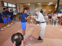 ちょうど体操の時間で、みなさんおそろいの中、お届けすることができ、とても喜んでもらえました。