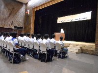 2018年7月9日 17時00分学校薬剤師の吉田朋希先生においでいただき、薬物乱用防止教室を実施しました。薬物乱用の怖さを理解するとともに未成年者の喫煙や飲酒などがきっかけになっていることを理解し、誘いを断る強い気持ちを持つことを目的に実施しました。