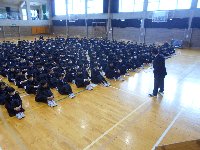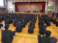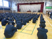 さて、本日、三学期始業式が行われました。校長式辞では「新年の目標をきちんと立て、自らやることをふやしていくこと。学年のまとめをしっかりと行い、新年度に向かっていって欲しい」とお話がありました。