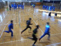 体育館では、部活動が行われています。寒さに負けず、声を掛け合いながらトレーニングに励んでいました。学習室では、受験を控えた3年生が自主学習を行っていました。目標に向かって、がんばれ受験生!
