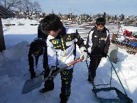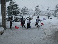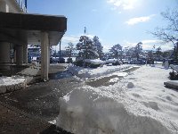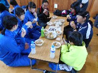 固くしまった雪に手こずりながらも、みんなで一生懸命に活動し、2時間ほどできれいに除雪することができ「おかげでとても助かりました!」と多くの方から感謝のことばをいただきました。いつもお世話になっている地域の方に少しですが恩返しができ、ちょっとうれしかったです。作業終了後、センターであったかい豚汁とアルファー化米で握った3種類のおにぎりをいただきました。ごちそうさまでした。
