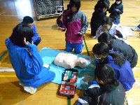 2018年1月16日 17時00分 2年生が2日間に分かれ、普通救命講習Ⅰを受講しています。今日は喜多方広域消防署から4名の署員の方においでいただき、3時間の救命講習を指導していただきました。心臓マッサージや人工呼吸などの心肺蘇生法やAEDの使い方などを学びました。