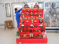 さらに玄関前には大変立派なひな壇飾りが登場しました。地域の方の善意で寄付していただいたものです。子どもたちの健やかな成長を願い、優しくほほえむおひな様は、本校生徒や教職員はもちろん、来客のみなさんをも楽しませてくれています。