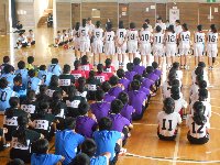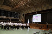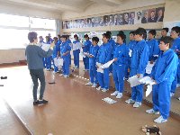 引き続き、来週26日(火)から始まる新人戦の壮行会が行われ、選手紹介と抱負の発表があり、その後応援団を中心にエールがおくられました。塩川中生徒の活躍を楽しみにしています。保護者のみなさま、応援をよろしくお願いします。