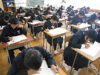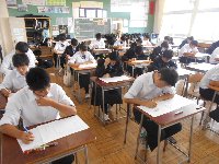 2017年10月3日 17時00分 2学期の中間テストが実施されました。3年生にとっては入試に関わる重要なテストです。1・2年生も新人戦があったりしてなかなか計画的にテスト勉強が進まなかったかも知れませんが、努力したことは必ず結果に現れるものです。生徒はそれぞれ真剣に問題に向き合っていました。