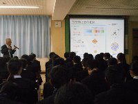 2017年10月5日 17時00分 2・3年生が放射線に関する学習会を行いました。講師に東北大学名誉教授の馬場護先生においでいただき、放射線に関する基礎知識、福島第一原発で何が起こったのか、放射線の人体への影響、今後どんなことに気をつけて生きていけばよいかなど、盛りだくさんな内容でしたがわかりやすく丁寧に教えていただきました。