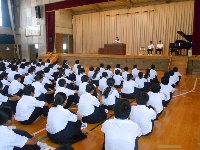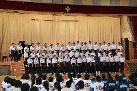 2017年8月28日 18時00分 今月のさわやか集会は、英語弁論と県小中学校音楽祭合唱、そして全会津駅伝に出場する生徒の壮行会が行われました。いずれも夏休み期間中、毎日一生懸命練習してきたみなさんです。その成果を全校生の前で披露してくれました。