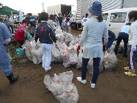 2017年7月31日 06時00分 昨日、日橋川緑地公園自由広場で川の祭典花火大会が盛大に開催され、小雨の混じる天気ではありましたが、大変多くの見物のみなさんで賑わいました。一夜明けて朝6時から、本校生徒と保護者、教員、地域の方が協力して広場一帯のゴミ拾いボランティア活動を行いました。参加者は併せて220人超、約40分ほどで多くのゴミが集まり、広場は元通りとてもきれいになりました。さすが中学生の力は大きいですね。みなさん、朝早くから大変お疲れ様でした。