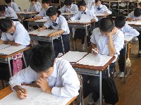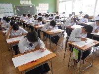 2017年6月23日 13時00分 今日から期末テストが始まりました。1週間前から部活動は停止、計画を立ててテスト勉強に取り組んできたことと思います。学習委員会のみなさんが作成してくれた対策問題も役だったことでしょう。最後まで粘り強く取り組んでいる姿が印象的でした。この土、日も計画にそってがんばって試験勉強してくださいね。