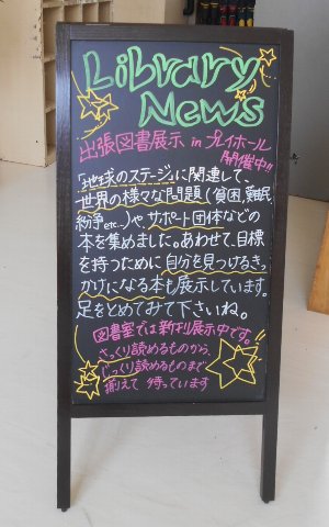 2017年7月4日 17時00分 「地球のステージ」感動の余韻が残る中、図書館を飛び出し、プレイホールにその講演内容と関連させた図書の展示が行われています。