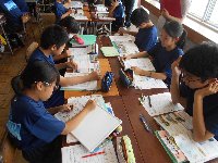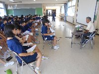 2017年7月14日 17時00分 午前中に郷土理解学習を行いました。2年生は長井仁さんから、世のため人のために一生をささげた瓜生岩子(イワばあちゃん)について、その生い立ちから、イワばあちゃんが行ってきたさまざまな慈善、福祉活動について教えていただきました。イワばあちゃんの温かいひとがらと、思いを貫き通す強い気持ちが心に残りました。3年生は蓮沼門三先生について、公益法人修養団の久世郁夫さんから、その生い立ちと生き方について詳しく教えていただきました。愛(親和)と汗(努力)を信条とした生き方が印象的でした。