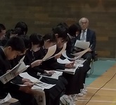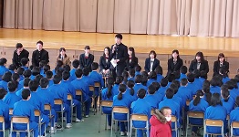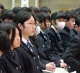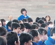 自己紹介に続き、高校を選んだ理由や高校生活を楽しく充実したものにするために必要なこと、中学生のうちに気をつけておきたいことなど、3名の代表者が、自分の体験とアドバイスを発表しました。その後、中学生の質問に答える形で会が進行し、進路を考える上でとても有意義な機会となりました。先輩の話はとてもわかりやすく核心を突いており、立ち会った教職員は一様に3年間の成長ぶりに目を見張っていました。これから進学や就職とそれぞれの道に歩みを進めます。今後の活躍もまた楽しみにしています。