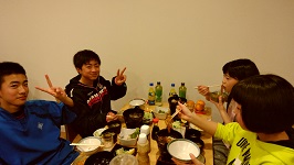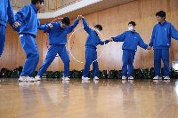 2017年4月18日 12時00分 会津自然の家で体験学習を行いました。午前中は「信頼関係づくりゲーム」で、じゃんけんからのハイタッチ、輪をつくりフラフープを一周させたり、無言で全員の誕生日順に並ぶバースデイラインなどを行いました。