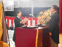 校長先生からは、「目標を持つ」「根気強く取り組む」「明るく挨拶できる心優しい生徒」になってくださいと、お話がありました。新入生を代表して、友田和子さんがりっぱに誓いの言葉を述べてくれました。教科書を受け取った塚原涼太くんの動きもりっぱでした。在校生を代表して生徒会長の長澤こはくさんが、歓迎のことばを心を込めて伝えてくれました。さらに山口市長さまをはじめ、多数のご来賓の皆様からお祝いの言葉をいただきました。お忙しい中、ご臨席いただき、誠にありがとうございました。