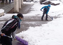2017年3月10日 17時56分 今週は冬型が続きました。雪が降ると陸上の朝練の生徒が中心となって玄関付近の除雪をしてくれます。この日(9日)は朝練がありませんでしたが、早めに登校した生徒が一生懸命片付けてくれていました。