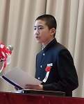 現生徒会長から「先輩と同じ時間を過ごせたことを嬉しく思います。」と感謝にあふれた送辞、前生徒会長から「みんなで一つを追い求める喜びを知った。言葉は自分に返ってくる。ポジティブに考えて言葉を発してほしい。」との後輩へのアドバイスを込めた答辞が述べられました。