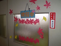 2016年12月2日 13時08分 本校の図書室は、司書の菊地さんや図書ボランティアの皆さん、図書委員のおかげで着々と整備が進んでいます。また、少しでも図書室に足を運んでほしいと月替わりで入り口の飾り付けを工夫しています。11月は楓の葉が風情たっぷりに彩っていました。この日(30日)は、12月の飾りを作成中でした。