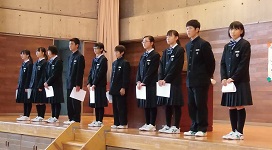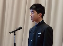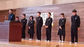 具体的な目標と共に抱負を発表され、次年度を見据えて今学期の充実を期す気持ちが伝わってきました。特に3年生代表からは、「高校合格はゴールではなくスタートだと考えており、中学生としての残された日々を大切にしたい。」との言葉がありました。
