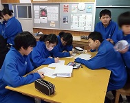 本校の生徒は、普段の学校生活でもちょっとしたことでもいやな顔をせず積極的に仕事を手伝ってくれます。「ちょボラ隊」なるものもあるようです。下の写真は昼休みに2年生の廊下で見かけた光景ですが、とっても微笑ましいものでした。