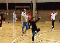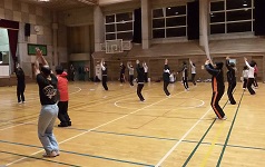 前半は本校体育教諭の指導で「簡単エクササイズ」を体験しました。普段運動不足の身には「簡単」どころかなかなかハードなものでしたが、久しぶりに爽快感を味わいました。