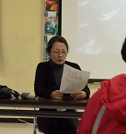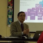 後半の部は、市の保健師小林さんと学校医武田先生を講師に喜多方市民の健康の状況や肥満予防のための生活習慣、食習慣の大切さについて理解を深めました。