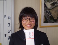 本日、市社会福祉大会において優秀作文の発表会があり、本校3年の佐藤わか菜さんがサマーボランティアに参加した体験を発表しました。