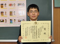11月18日(金)、消防署において防火ポスターの表彰式がありました。特選を受賞した本校2年の辰野楓真くんが参加しました。