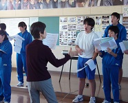 2016年10月27日 13時44分 蒼煌祭の合唱コンクールに向けてどの学級も熱が入っています。毎年熱心にご指導いただいている大竹光子先生に今年も指導をお願いできました。今年は、2,3年生の各学級での指導の他に学年合唱の指導をしていただきました。大竹先生の熱のこもった指導に、生徒達は真剣なまなざしで応えていました。