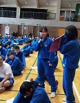 訓練では、喜多方警察署主任少年警察補導員の岩澤さんと塩川駐在の佐々木さんに指導していただきました。訓練後に全体指導の時間がありました。岩澤さんからは、携帯やスマホの利用によるトラブルが増加しているため被害防止には情報モラルを高めてガードを固くしなければならないこと、ナンパの被害に遭わないための心得やとっさの場合の危険回避の方法などを教えていただきました。佐々木さんからは危険を感じたときの間合いの取り方を教えていただき、生徒は真剣に耳を傾けていました。