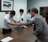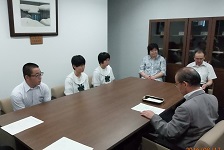 大会を前に喜多方市教育委員会で全国大会出場者の激励会が行われ、卓球競技に出場する喜多方二中の2名の生徒とともに出席しました。太秋くんは、教育長さんを前に「自分の相撲を取りきりたい。無心でがむしゃらに攻めたい。」と力強く抱負を披露しました。