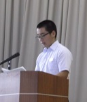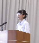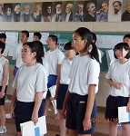 1 特設相撲部の練習に毎日参加し、県大会で見事準優勝した生徒の発表でした。全国中学の大会に参加し、100Kg超えの相手との勝負をしたことを全校生徒に自分の言葉で伝えました。「1勝2敗で、決勝トーナメントへはすすめませんでしたが、貴重な経験だった。」と語っていました。この経験をさらにいかしていきたいと、これからの抱負も話していました。