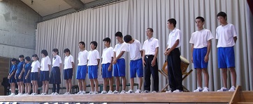 下の写真は、今日の練習の様子です。暑い夏に負けず熱い練習を重ねてきた生徒たちは迫力のある歌声を響かせていました。
