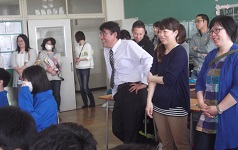 2016年4月24日 12時30分 23日(土)4校時、年度始めの授業参観を行いました。年度始めのお忙しい中、多くの保護者の方においでいただきありがとうございました。教室に入りきれなくて廊下で参観される方もいらっしゃいました。小学生の姿もありました。
