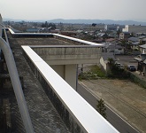 北校舎屋上の縁の部分はコンクリートの笠木でした。劣化が進み破片落下の心配もありましたが、コンクリートの補修とともにアルミのカバーをしっかり取り付けていただきました。