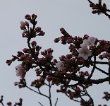2016年4月4日 17時44分 昨日の暖かさに誘われたのでしょうか、校庭の桜が花をつけました。塩中も開花宣言です。