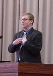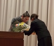 2016年3月22日 17時43分 今日はマーカス先生の離任式を行いました。2学期からALTとして勤務していただいていましたが、本日で任期を終えて帰国されることになりました。マーカス先生は英語と日本語でお別れのスピーチをしてくださいました。生徒代表による送別のことばも、同時通訳のように日本語と英語で贈りました。最後に花束を贈呈し別れを惜しみました。