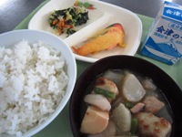 麦ごはん,鮭の黄金焼き,磯和え,筑前煮,牛乳
