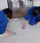 2016年3月8日 18時45分 3月1日より、清掃時間を5分延長して学期末特別清掃を行ってきました。その中で床の水拭きを行ってきましたが、今日は放課後にクリーン委員がそれぞれの教室のワックスがけを行いました。下の写真はワックスがけを前に教室の床をきれいにしている高道学級の様子です。