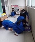 また、Ⅱ期選抜を受検しない3年生は5校時に感謝の気持ちを込めて美化活動を行いました。友達と力を合わせて体育館や廊下、昇降口、階段などを磨き上げました。