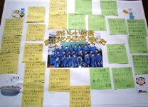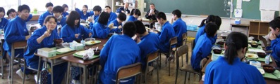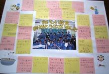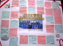 給食時間に3年生の教室を訪れると、とてもうれしいサプライズがありました。各学級から、ありがとうの気持ちがたくさん詰まった寄せ書きをいただきました。給食室一同、とても感激いたしました。3年生のみなさん、3年間おいしく給食を食べてくれて本当にありがとうございました!みなさんが元気にご活躍されることを心から応援しています!!