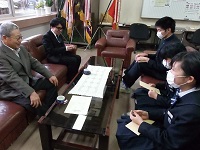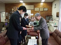 本日会長の林健一郎さんと事務局の小椋さんが来校され、一人一人に激励品を手渡していただきました。