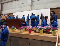 2016年3月10日 16時43分 明日の卒業証書授与式を前に1,2年生が会場準備を行いました。3年生が気持ちよく巣立つことができるようにと心を込めて、てきぱきと動いていました。2時間後にはすっかり整いました。