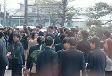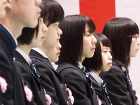 2016年3月11日 13時43分 気温は低めでしたが穏やかな天候にめぐまれて平成27年度卒業証書授与式を行いました。式に先だち全員で5年前の東日本大震災の犠牲者に黙祷を捧げました。